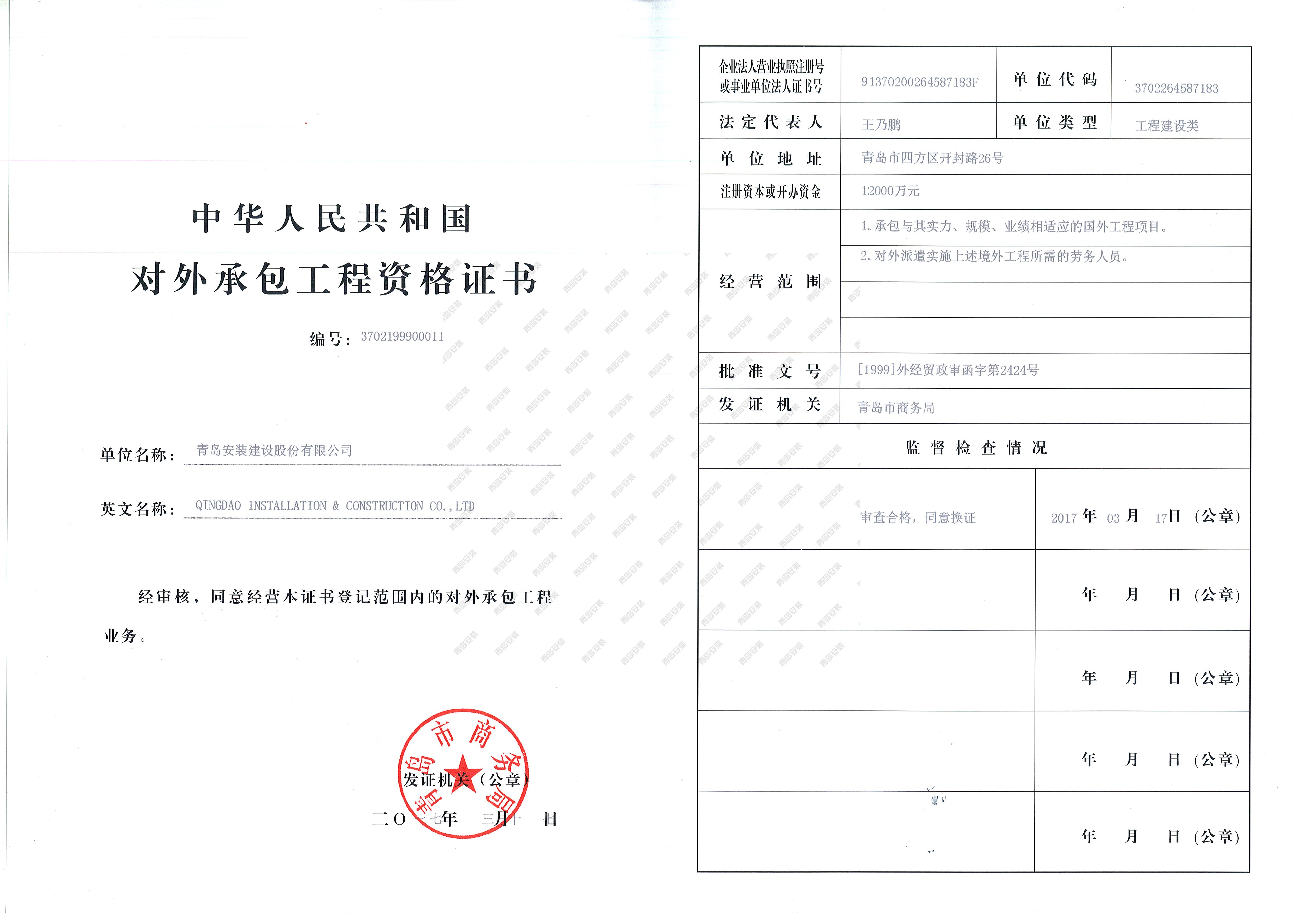 對(duì)外承包工程資格證書